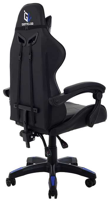 - Спинка кресла регулируется по углу наклона (до 115°), что позволяет комфортно откинуться для отдыха или игр.