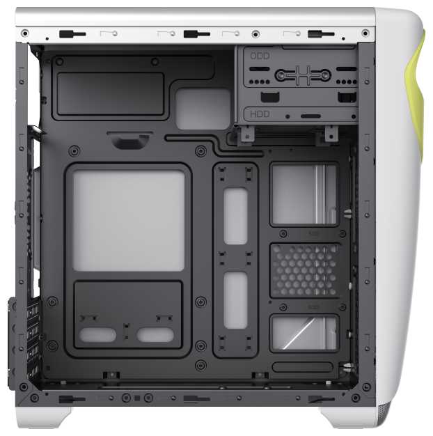 - - Тонкий металл, не съемный отсек для установки dvd привода и hhd, нет возможности поставить сжо для процессора