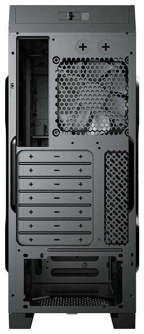 - + Корпус хороший, удобный. Все кнопки и разъемы сверху, что удобно когда корпус у вас под столом. Куча кулеров, с регуляторами по зонам.