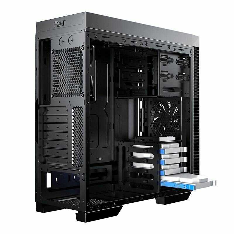 - Большой корпус, вместительный, есть корзина для 4х жёстких дисков