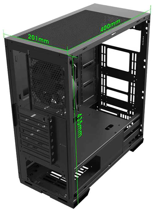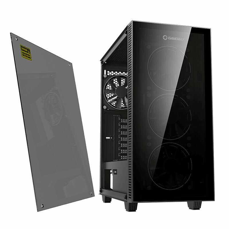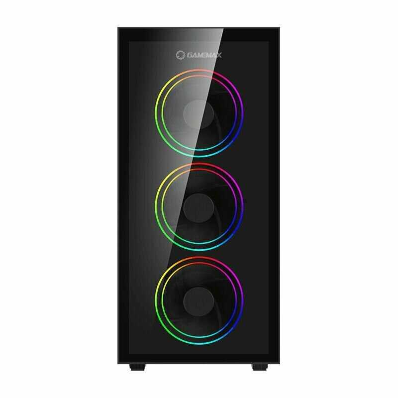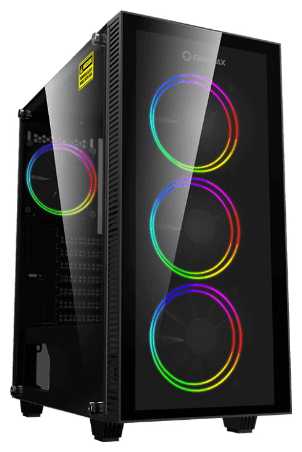 - + Хорошая продуваемость,компактный,современный дизайн,четыре установленных тихих вентиляторов 120 мм ARGB Fan-GMX-DBB