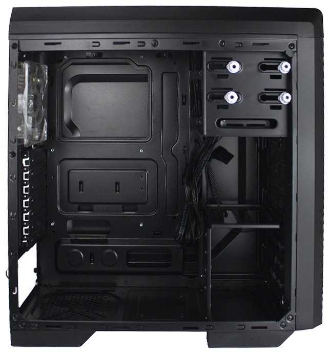 - + Вместимый, +кулер, есть разъемы USB 3, картридер в корпусе , есть возможность установки привода, хорошо охлаждается