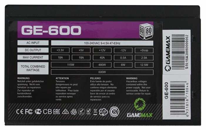 14 отзывов пользователей o GameMax GE-600 600W