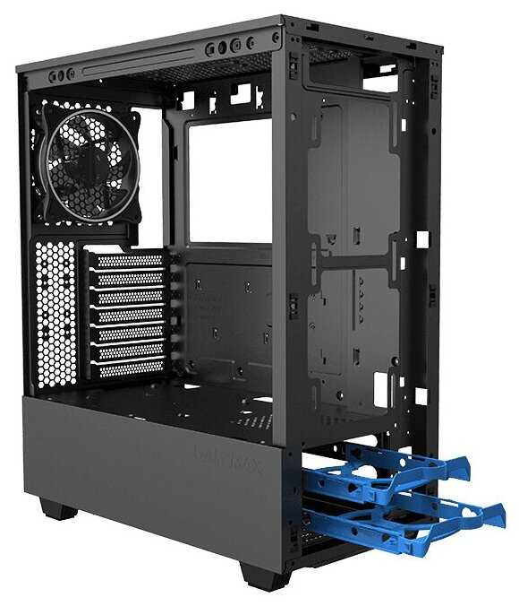 съемный пылевой фильтр, окно на боковой стенке, возможность установки системы жидкостного охлаждения, блок управления вентиляторами