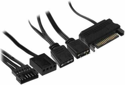 - Единый кабель управления объединяет PWM (4-pin), ARGB (3-pin 5V) и питание SATA.