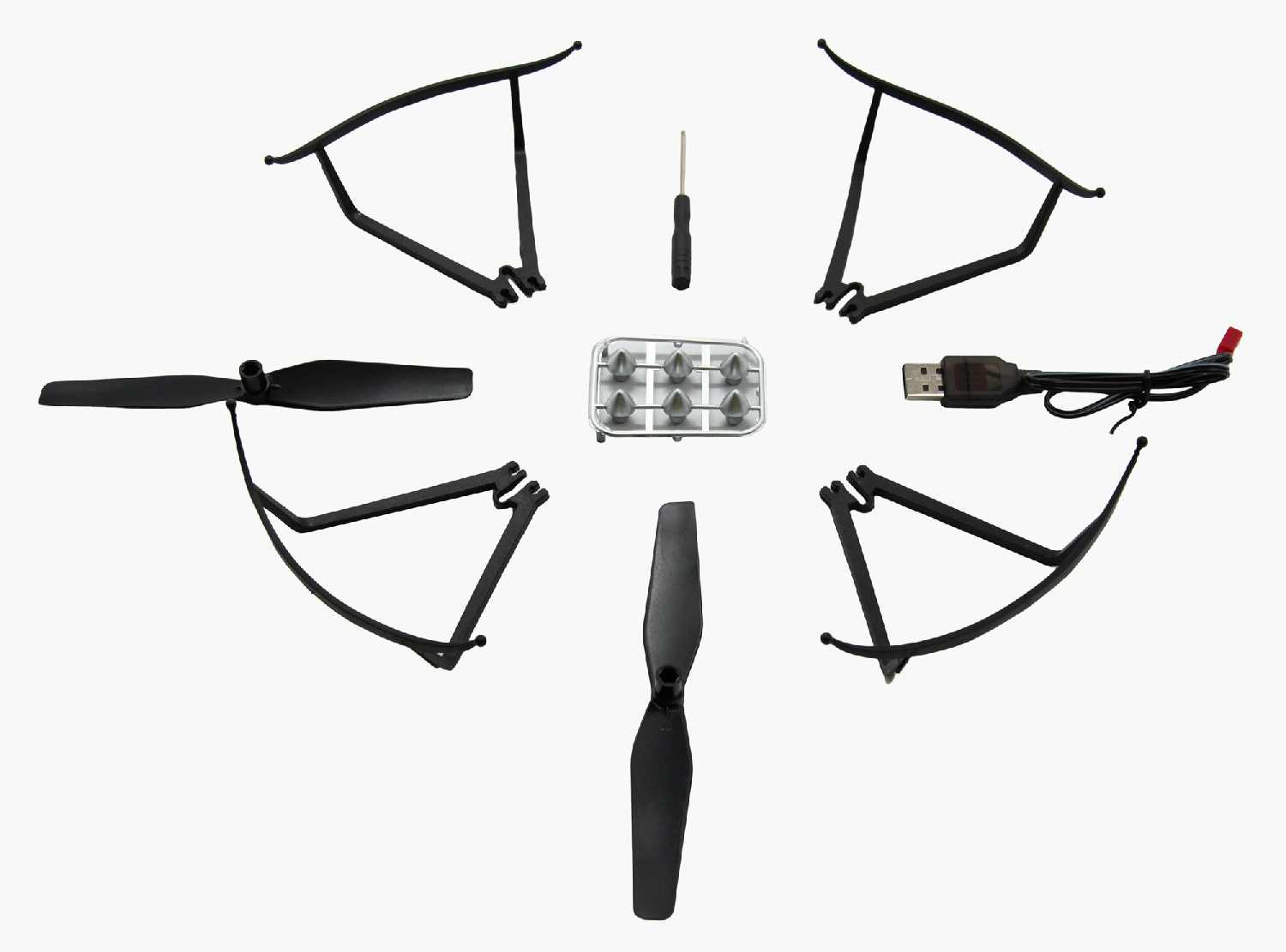 - - запасных лопастей нет,управление пультом,инструкция на китайском,сумки для хранения нет.В остальном все хорошо.