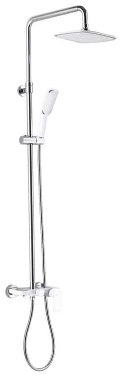 | Комплектация : | верхний душ, держатель лейки, душевая штанга, лейка, переключатель потоков, ручной душ, смеситель, шланг, эксцентрик |
