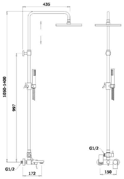 | Дополнительная информация : | высота стойки для душа: 1400 мм, диаметр верхнего душа: 200 мм |