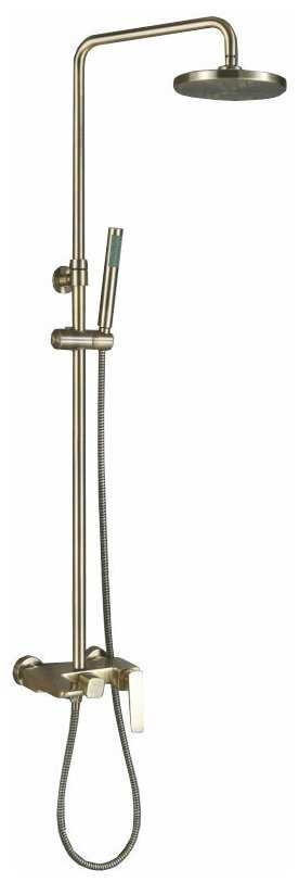 | Комплектация : | верхний душ, держатель лейки, душевая стойка, душевая штанга, кронштейн для верхнего душа, лейка, переключатель потоков, смеситель, шланг |