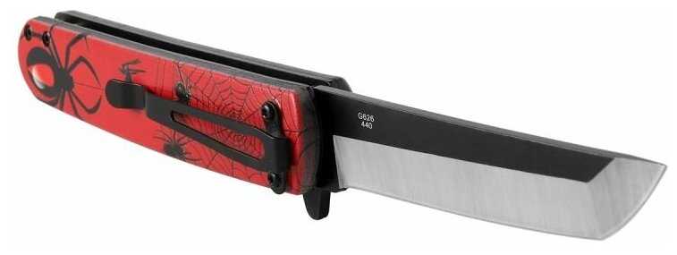 - Режущая кромка выступает за линию рукояти в сложенном состоянии на 2–3 мм.