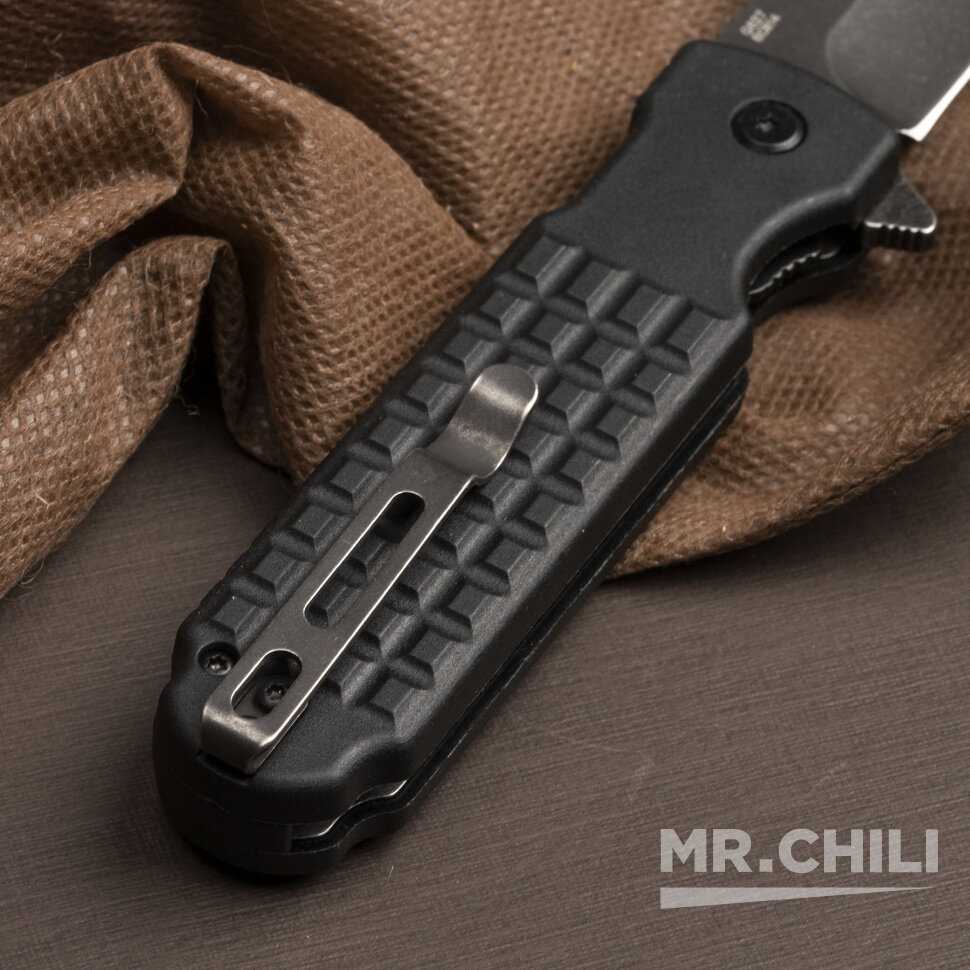 - + Увесистый, достаточно неплохая заточка, крепкая клипса, удобно лежит в руке, не скользит, черный матовый клинок (стоунвош), лайнерлок работает корректно