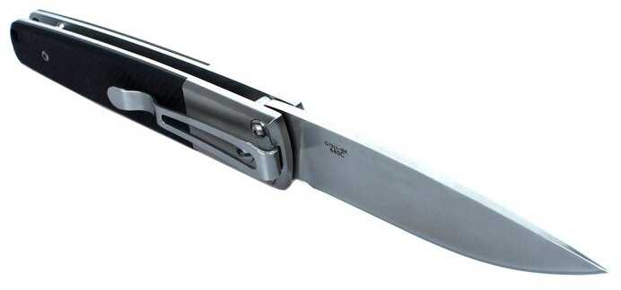 - Рукоять из G10 с текстурированным покрытием обеспечивает надежный хват даже мокрыми руками.