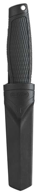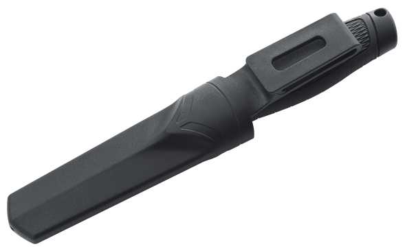 Пластиковые ножны с симметричным дизайном позволяют вставлять клинок любой стороной (удобно для правшей и левшей). Фиксация очень плотная – нож не выпадает даже при интенсивном встряхивании. Крепление-крюк обеспечивает удобное снятие с пояса. Недостаток: многим пользователям не хватает выступа-упора под палец для легкого извлечения одной рукой. -