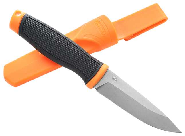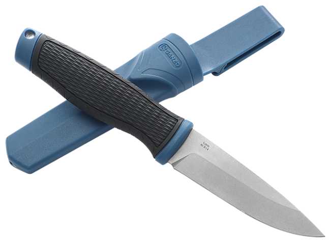 Наверное лучший из конкурентов легендарного Mora Companion, особенно по продуктам. Довольно высокие спуски при нетолстом обухе, адекватное сведение и ПРАВИЛЬНАЯ геометрия клинка в совокупности дают очень приятный, понятный и контролируемый рез, в то время, как Мora норовит расколоть или застрять в продукте, или выйти на острие, когда это не требуется.