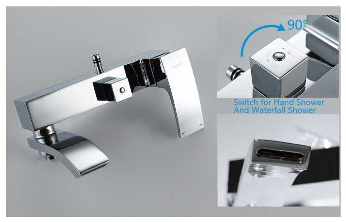 Красивый, элегантный смеситель со стойкой. Удобно что убирается гусак при переключении на душ. Из за того гусак прямоугольный вода из него льется с эфектом водопада.