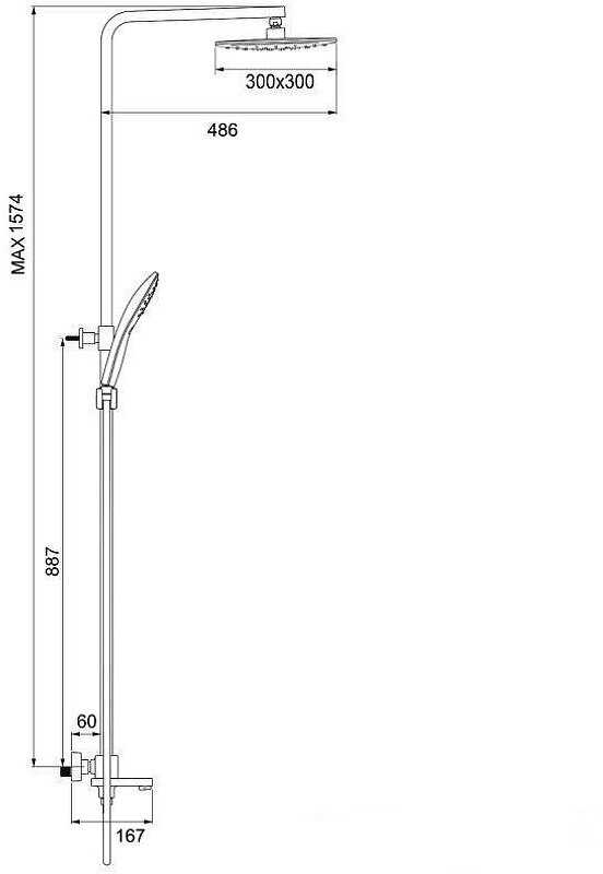 | Дополнительная информация : | высота стойки для душа: 1500 мм, длина верхнего душа: 300 мм, ширина верхнего душа: 300 мм |