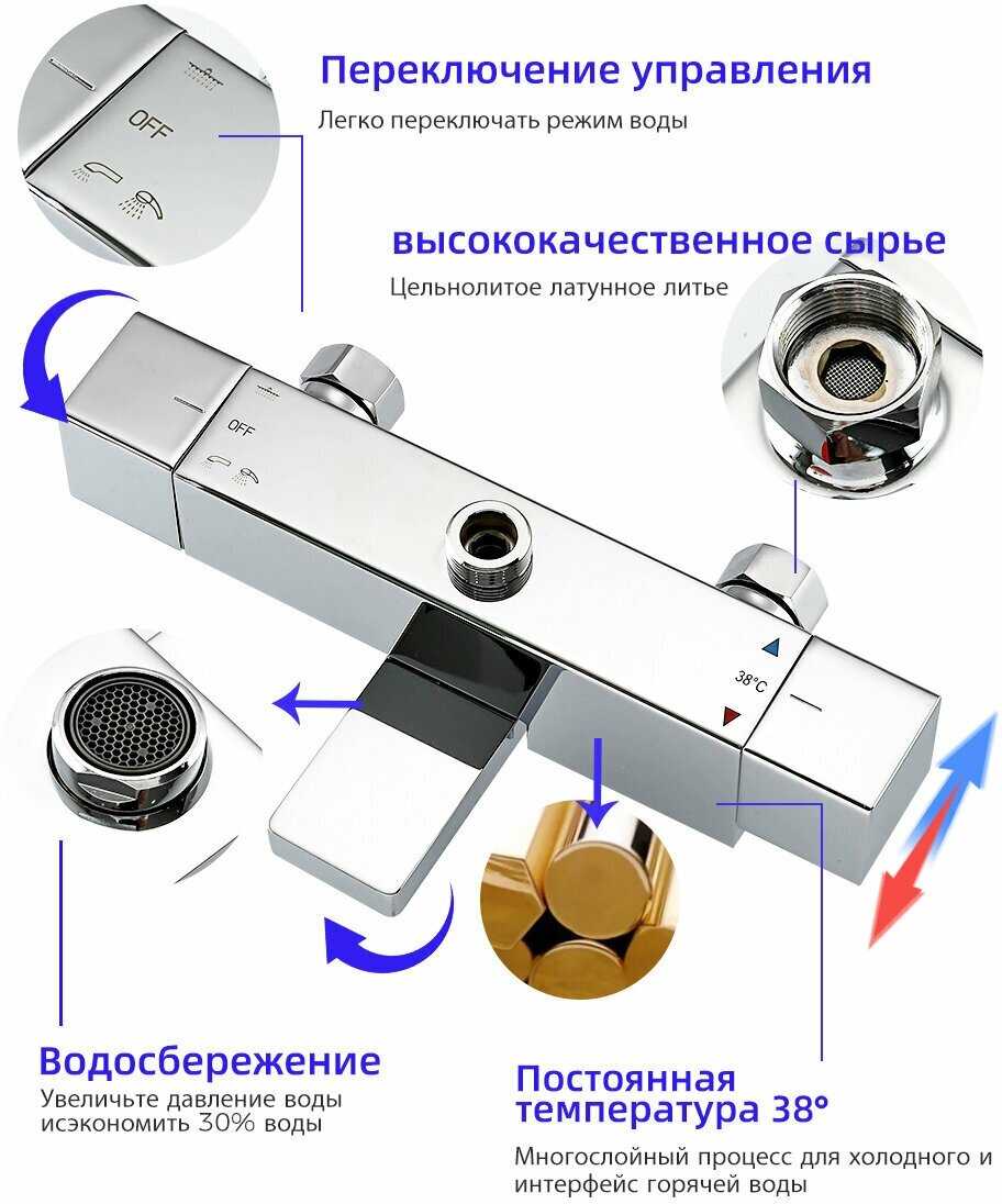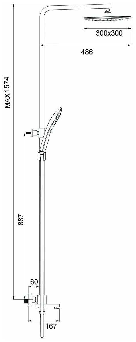 Дополнительная информация : | высота стойки для душа: 1500 мм, длина верхнего душа: 300 мм, ширина верхнего душа: 300 мм |