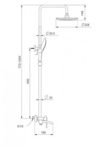 | Высота стойки для душа : | 695 мм |