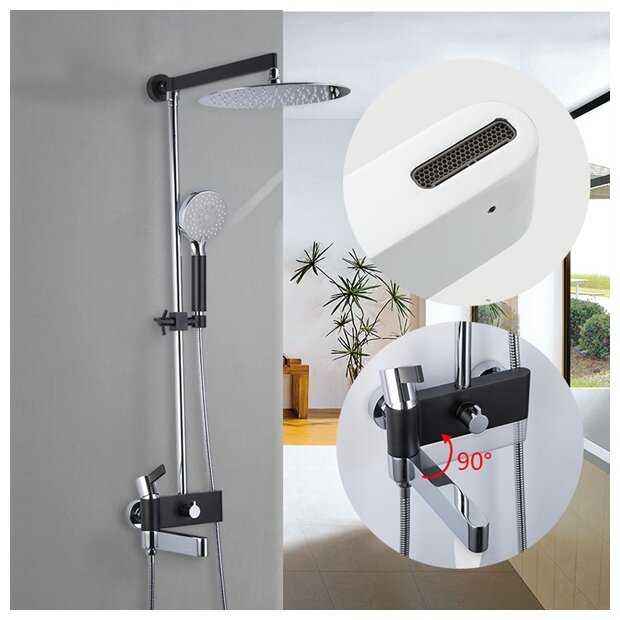 цвет черный/хром, высота стойки для душа: 1500 мм, диаметр душевой лейки: 120 мм, диаметр верхнего душа: 300 мм