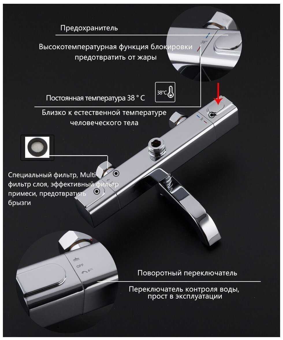- Наличие предохранителя от ошпаривания: при отключении холодной воды термостат мгновенно блокирует подачу.