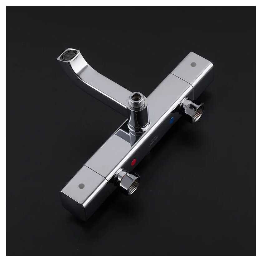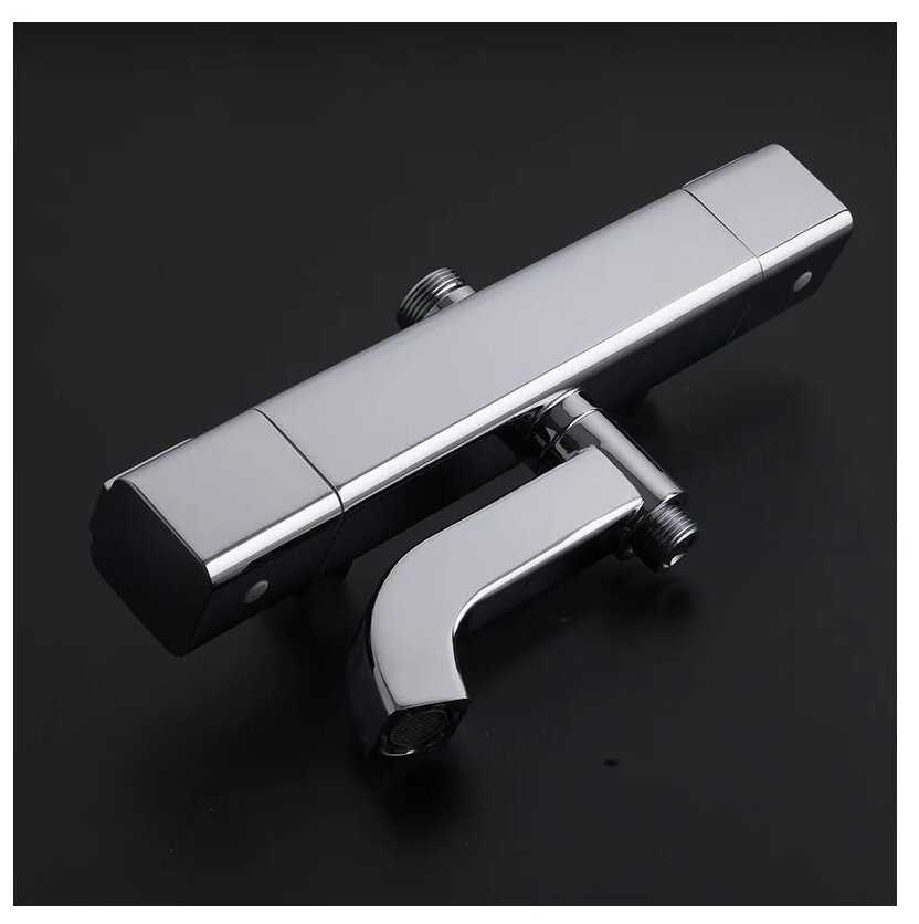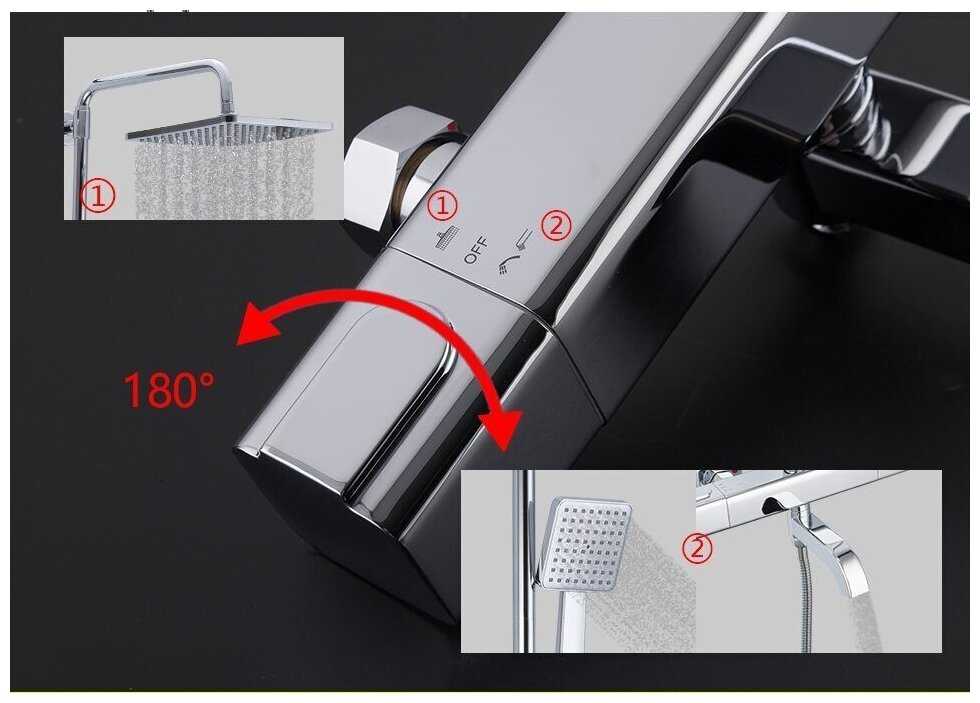 Система хорошая, но всем кто не знает, у систем с термостатом нет возможности регулировать поток воды т.е. нельзя включить воду потише или побольше. У вас только два переключателя: 1. выбираете откуда подавать воду (кран, Лейка, или душ), 2. температура воды: похолоднее или погорячее. Сила струи воды будет зависеть от вашего давления в трубах. Меня сила потока полностью устраивает. Не много её можно менять разными режимами лейки.