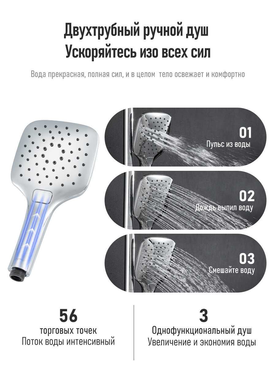 | Режимы : | массажная струя, мягкая струя, смешанная струя, тропический дождь |