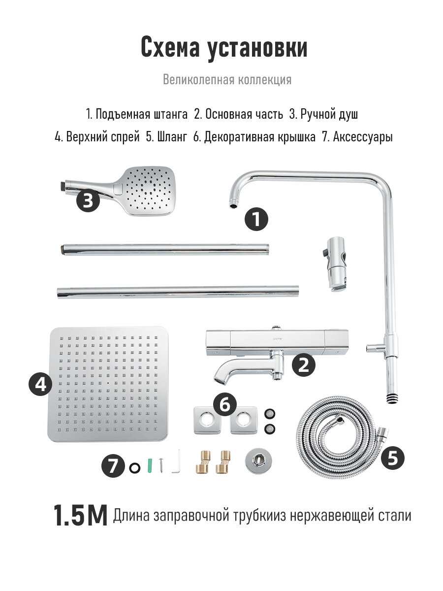 - достаточная длина трубы для верхнего душа. Не придется наращивать под свои 184см роста. - - - отстойная инструкция, корявый перевод на русский.