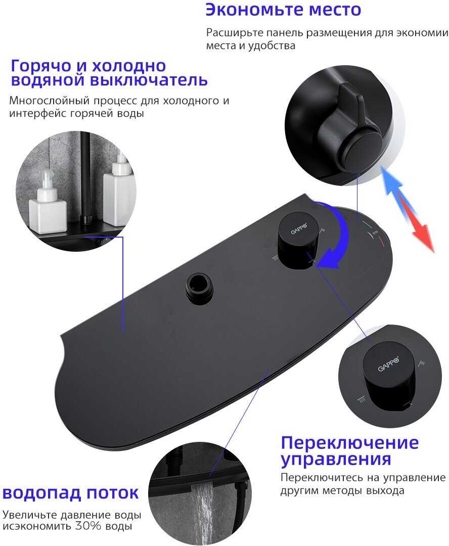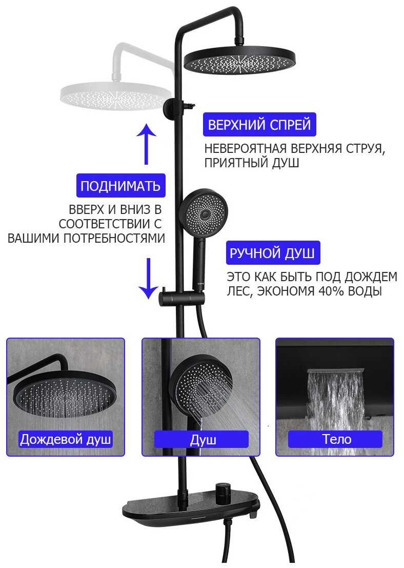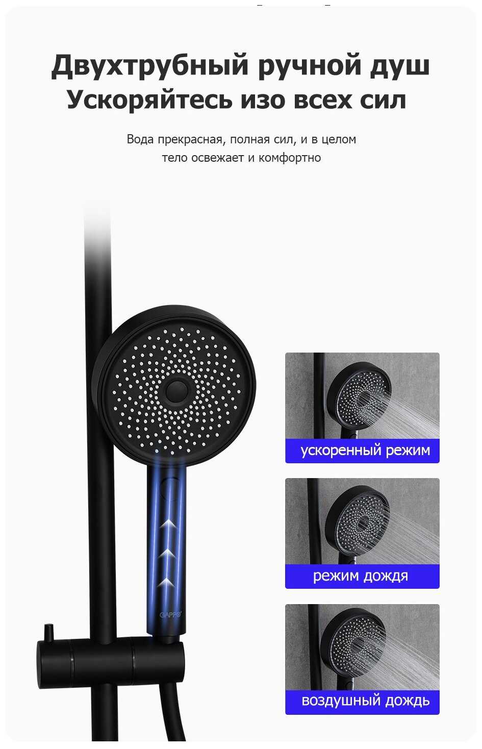 Режимы : | массажная струя, мягкая струя, смешанная струя, тропический дождь |