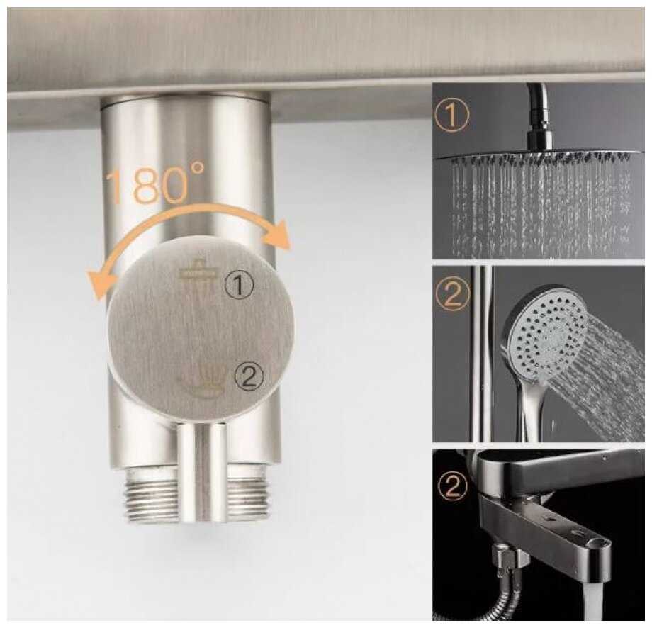 - + Красивый матовый цвет, необычный убирающийся излив, тропический душ
