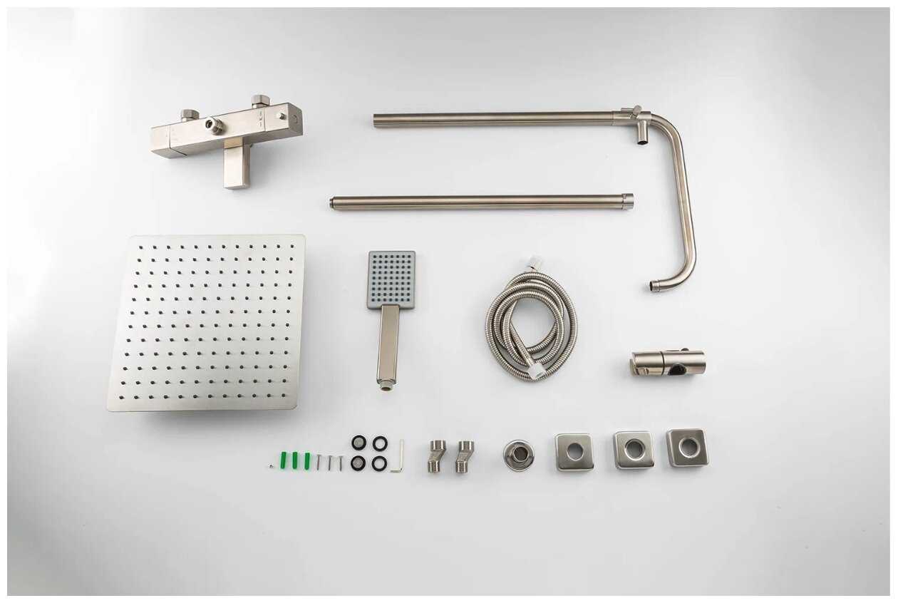 | Комплектация : | верхний душ, держатель лейки, душевая стойка, душевая штанга, излив для набора воды, кронштейн для верхнего душа, лейка, набор эксцентриков, настенный держатель, отражатель, переключатель потоков, прокладки, ручной душ, смеситель, шланг |