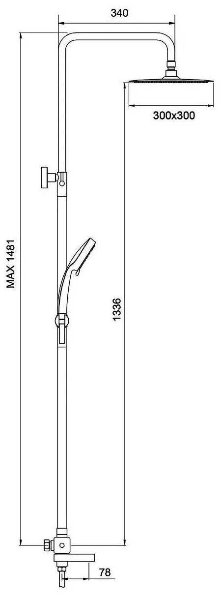 | Дополнительная информация : | высота стойки для душа: 1440 мм, диаметр верхнего душа: 250 мм |