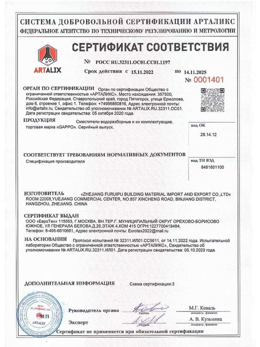 | Управление : | вентильное, джойстиковое, нажимное, рычажное |