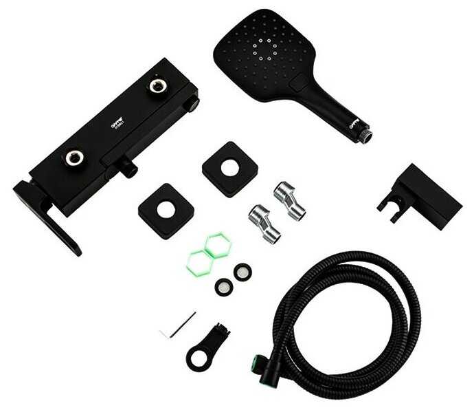 | @Комплектация : | смеситель - 1 шт, душевой шланг - 1 шт, душевая лейка - 1 шт, держатель лейки - 1 шт, комплект отражателей, комплект эксцентриков |