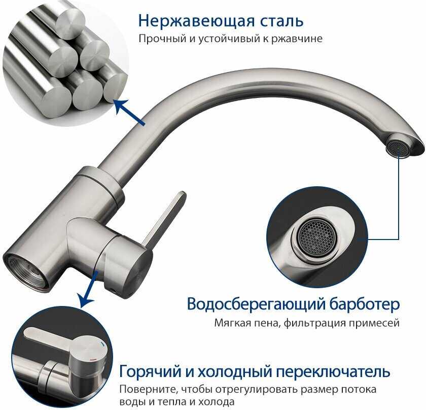 - + отличный смеситель, тяжёленький. смотрится на кухне отлично, покрытие не маркое. сантехник похвалил меня за правильный выбор. очень довольна, рекомендую товар.