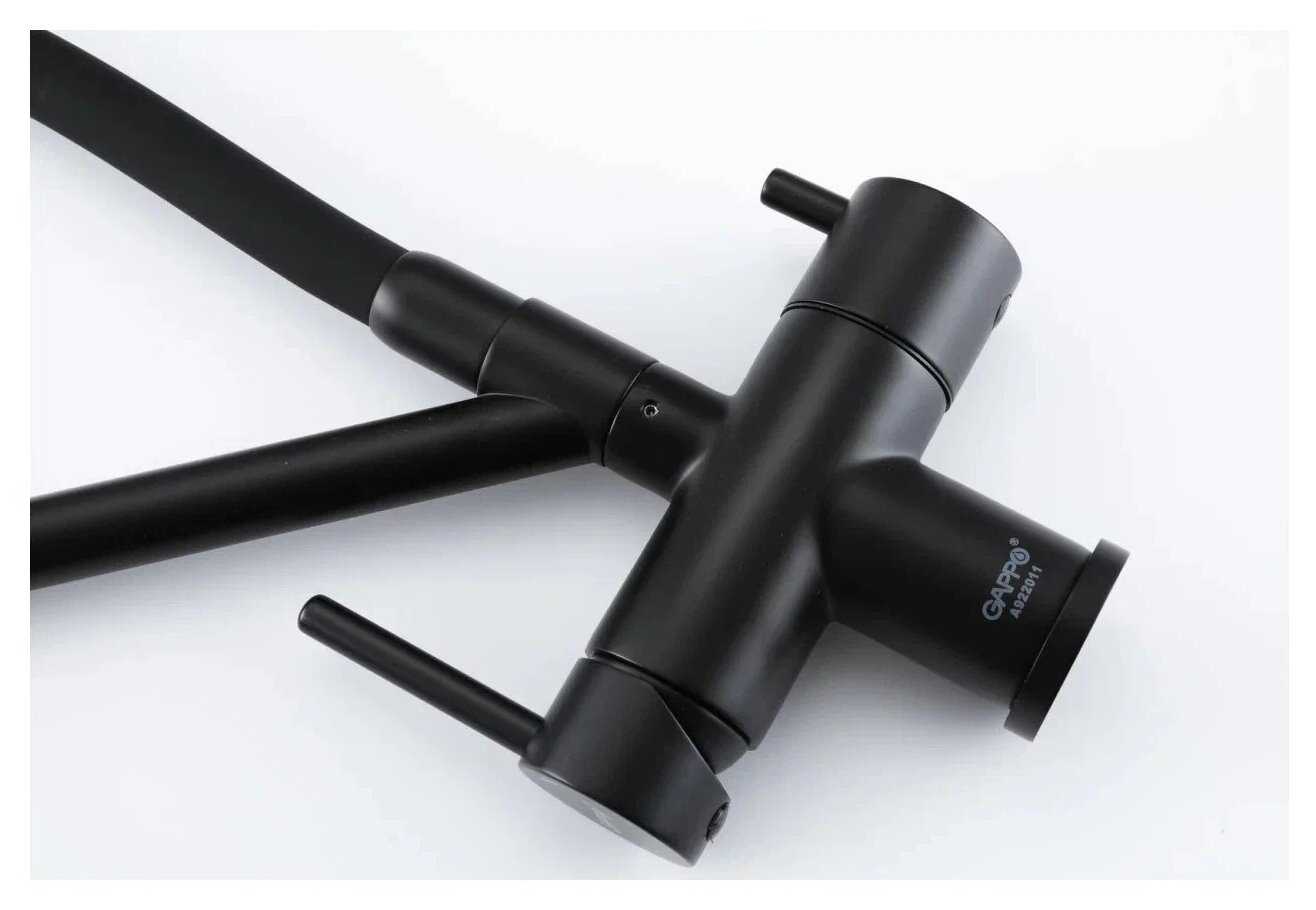 - Аэраторы на обоих изливах обеспечивают равномерный поток и снижают брызги, хотя для фильтрованной воды напор слабее из-за тонкой трубки (диаметр 6 мм).
