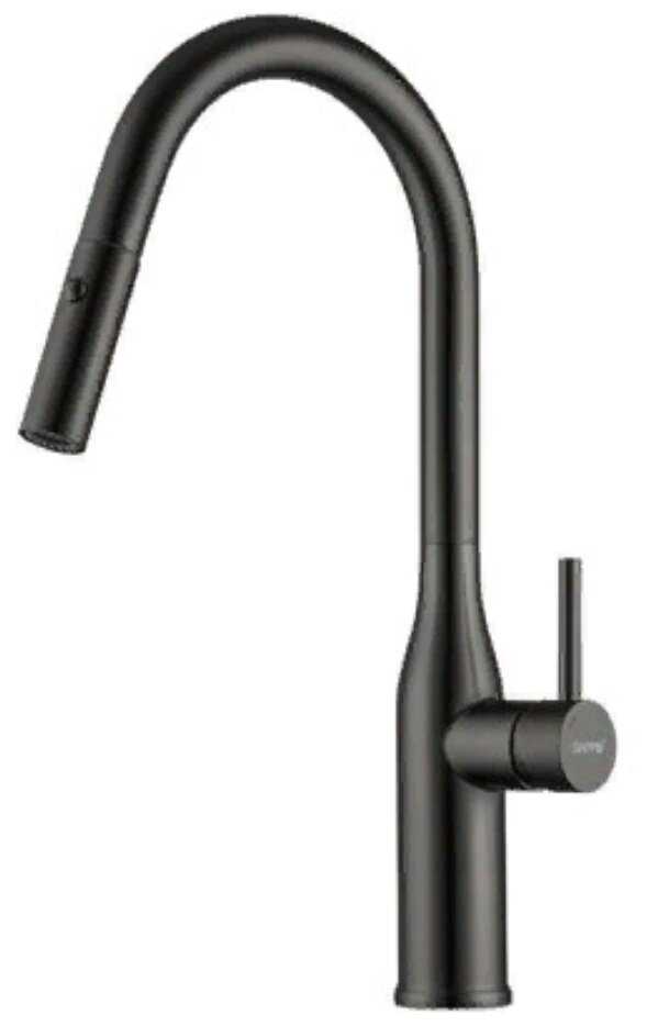 Смеситель не маленький, высокий очень удобно. Качество как всегда от Gappo. Вода может литься а двух режимах (обычный и душ) на носике необходимо просто нажать кнопку (очень удобно и просто). Так же носик выдвигается при необходимости за счет встроенного внутри шланга и обратно затягивается с помощью скрытой груши (фото прилагаю). А цвет просто бомба, необычный и очень красивый.