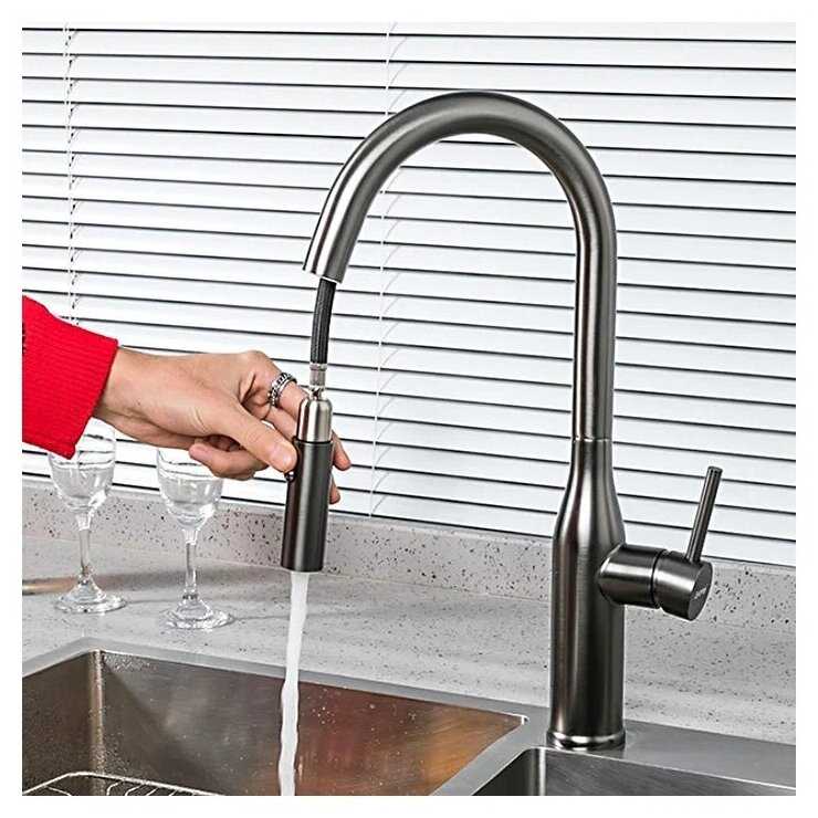 Смеситель Gappo демонстрирует противоречивые результаты в эксплуатации. С одной стороны, его дизайн и базовый функционал превосходят ожидания для своей ценовой категории. Высокий излив из хромированной латуни (толщина стенок 2.5 мм) идеален для просторных кухонь с глубокими мойками — пользователи отмечают удобство мытья габаритной посуды и кастрюль. Выдвижная лейка с гибким шлангом существенно упрощает очистку раковины, хотя отсутствие магнитной фиксации требует постоянного удержания её рукой. Режим «дождь» с расходом 2.5 л/мин эффективен для бережного мытья фруктов, но при давлении выше 3 бар превращается в источник брызг, покрывающих столешницу мелкими каплями.