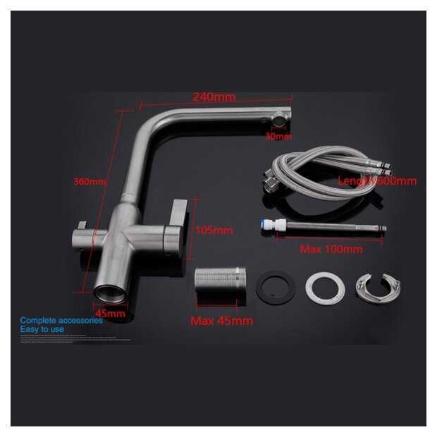 - - Слишком высокий, брызги во все стороны. Нестандартные аэраторы. Очень маленькое отверстие для фильтра, пришлось снять аэратор. Нет ключа для аэратора фильтрованной воды.