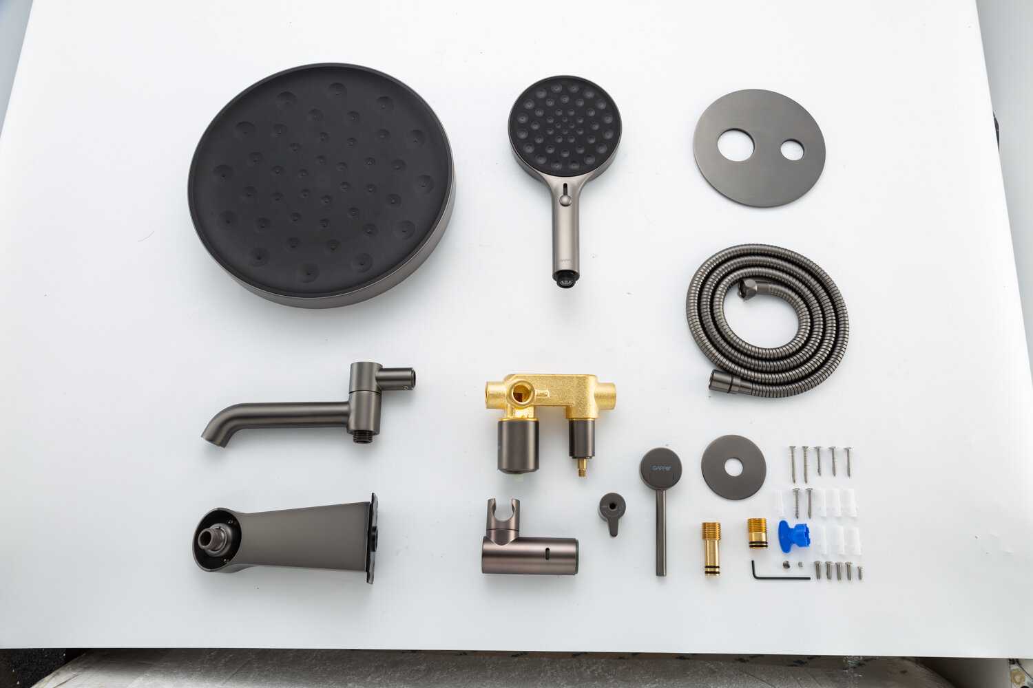 | Комплектация : | верхний душ, гусак, держатель лейки, дивертор, излив для набора воды, кронштейн, кронштейн для верхнего душа, лейка, набор эксцентриков, настенный держатель, отражатель, прокладки, ручной душ, смеситель, шланг |