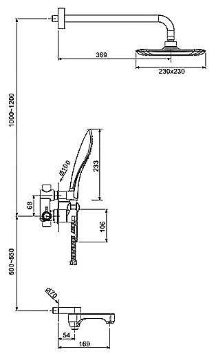 -верхний душ работает на треть площади