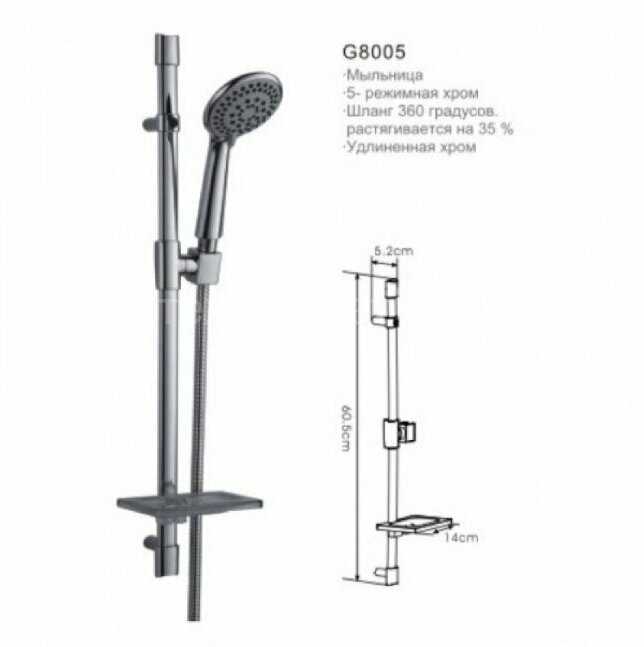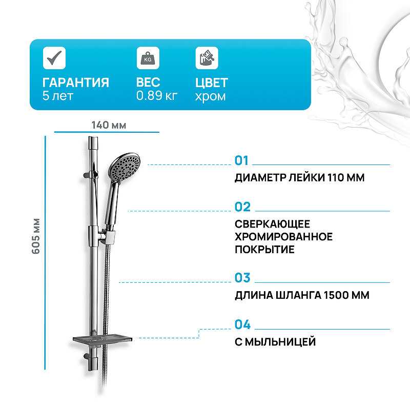 Дополнительная информация : | высота стойки для душа: 605 мм |