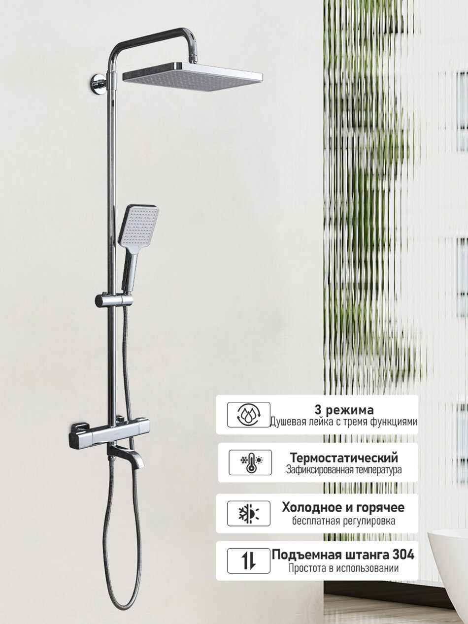 Термостат работает, регулировка воды по температуре, переключение между режимами тропический душ/лейка/кран понятный.
