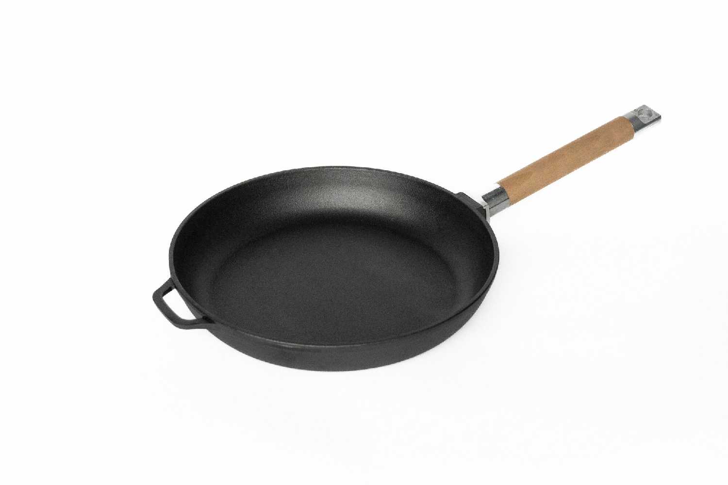 - + Хорошая чугунная сковорода. Съемная ручка, можно готовить хоть на плите, хоть на костре!