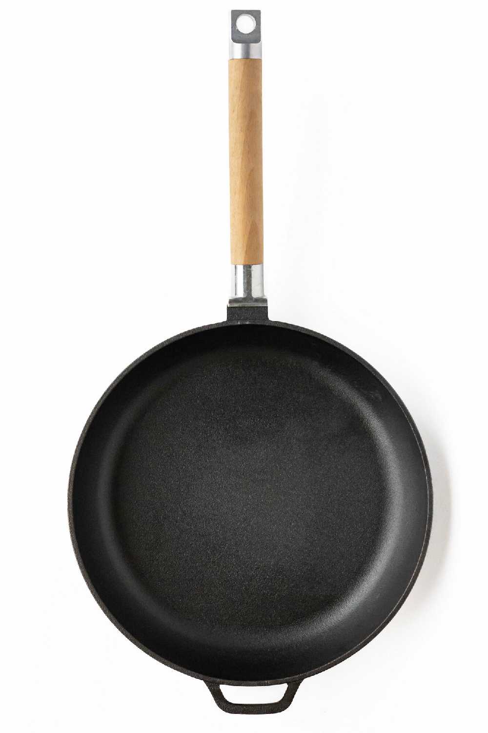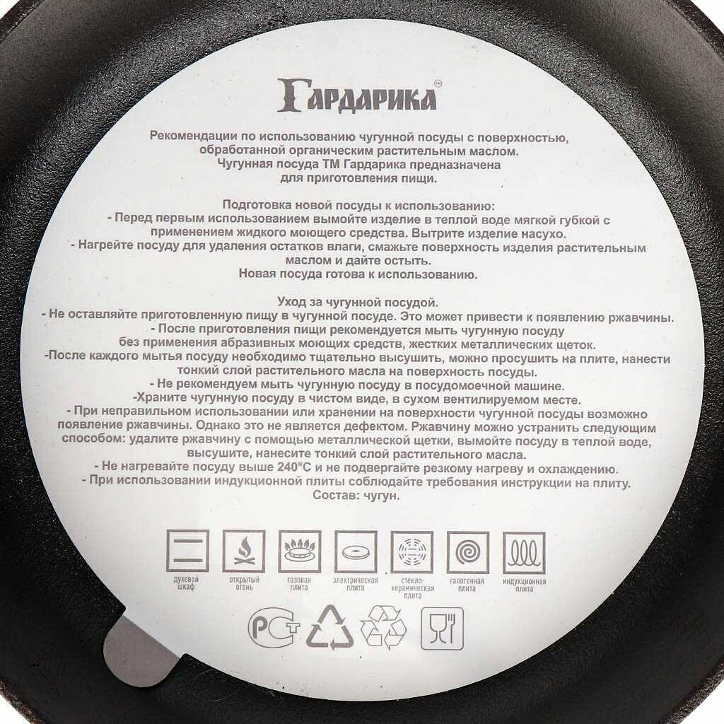 - + Оптимальный размер для чугунной сковороды. Большего размера слишком тяжёлые.