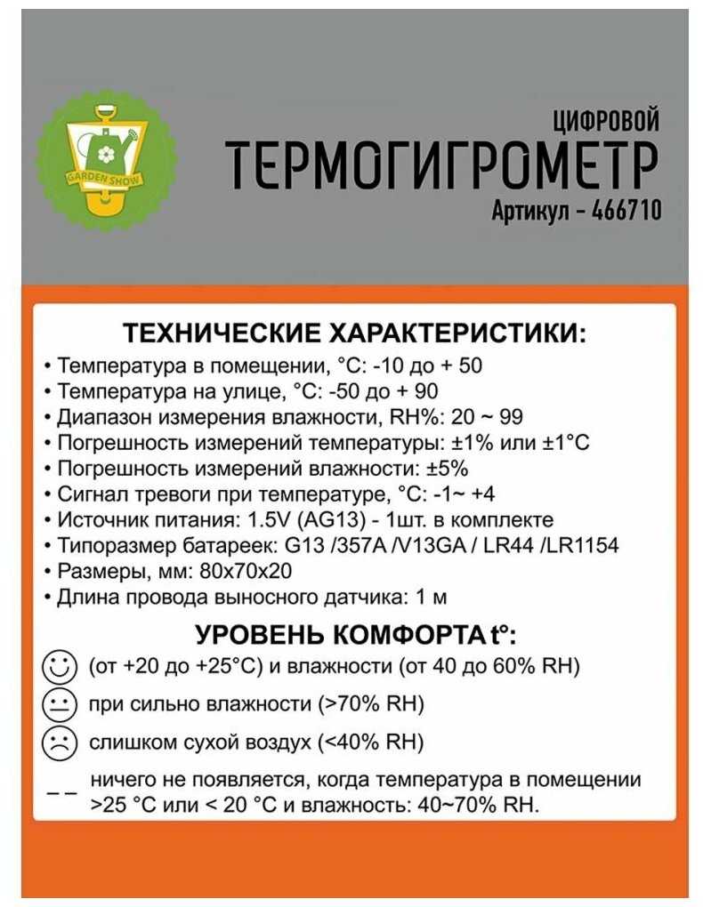 2 отзывов пользователей o GARDEN SHOW Термогигрометр цифровой с выносным датчиком