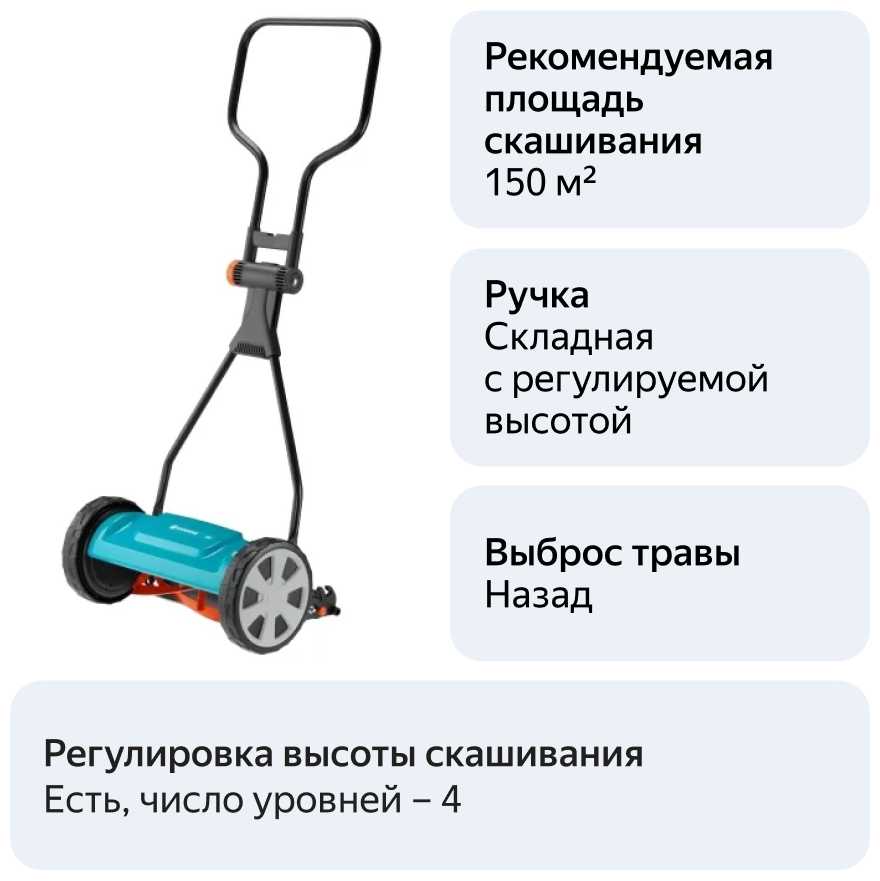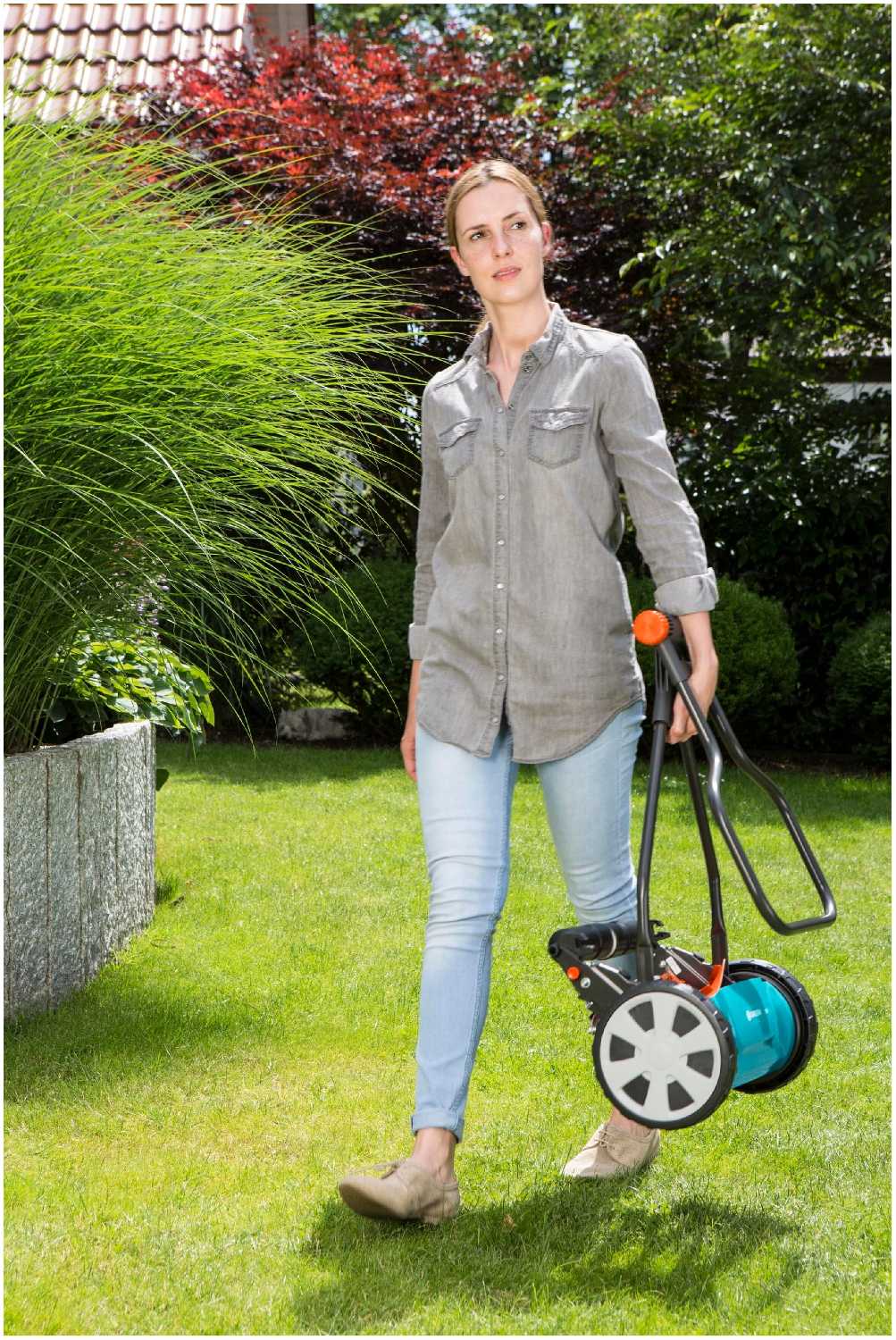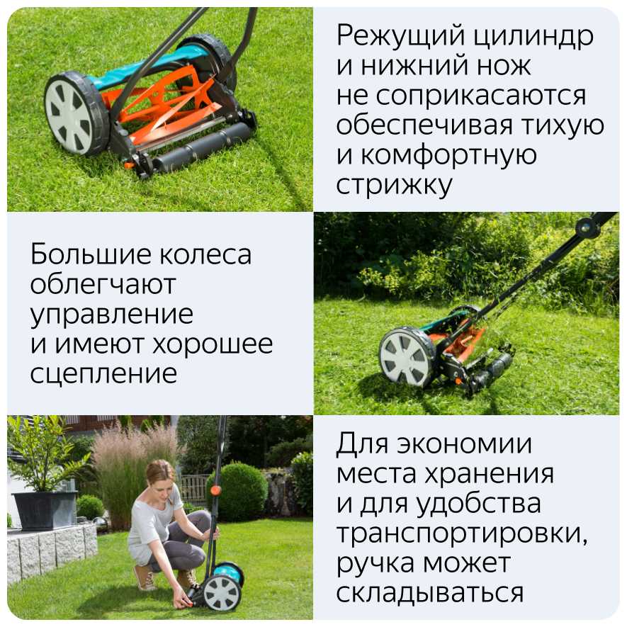 - + Я-женщина.У меня есть электрическая косилка, которую возить надо.Она замечетельная, но ! каждый раз , когда я её включаю, для меня это стресс - когда камушки попадаются, как она ревёт, смотреть, чтобы не наехать на провод.В общем, хоть я и выносливая, но не женское это дело по большому счёту.Я купила механическую "гардэна" Газонокосилка мне понравилась очень! А теперь расскажу , как я работаю и какой у меня подход.Первую весеннюю высокую запущенную траву я скашиваю своей электрической.А дальше, я поддерживаю свою травку в отличной форме именно благодаря механической барабанной.Косит она замечательно, ровненько любую невысокую травку! Внимание НЕВЫСОКУЮ ! до примерно 11см, как и заявлено в инструкции.Дело в том, что она настолько легка в управлении, от неё нет шума, её не надо вычищать, что можно косить хоть через день! Что , в общем-то я и делаю теперь..и не допускать до вырастания травы.И , главное для меня, нет никакого стресса!Выше 12 см она не косит, она просто мнёт её. хочу добавить, что газон у меня вовсе не "альпийский образцовый", а просто разнотравье на ровной достаточно ровной лужайке.