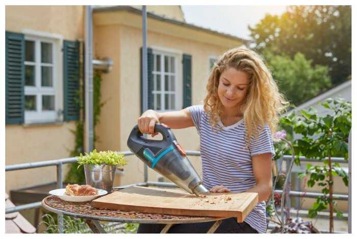 На террасу с растениями, на земле или какой-нибудь небольшой лист или только для того, чтобы пропылесосить крошки или пыль, идеально подходит,