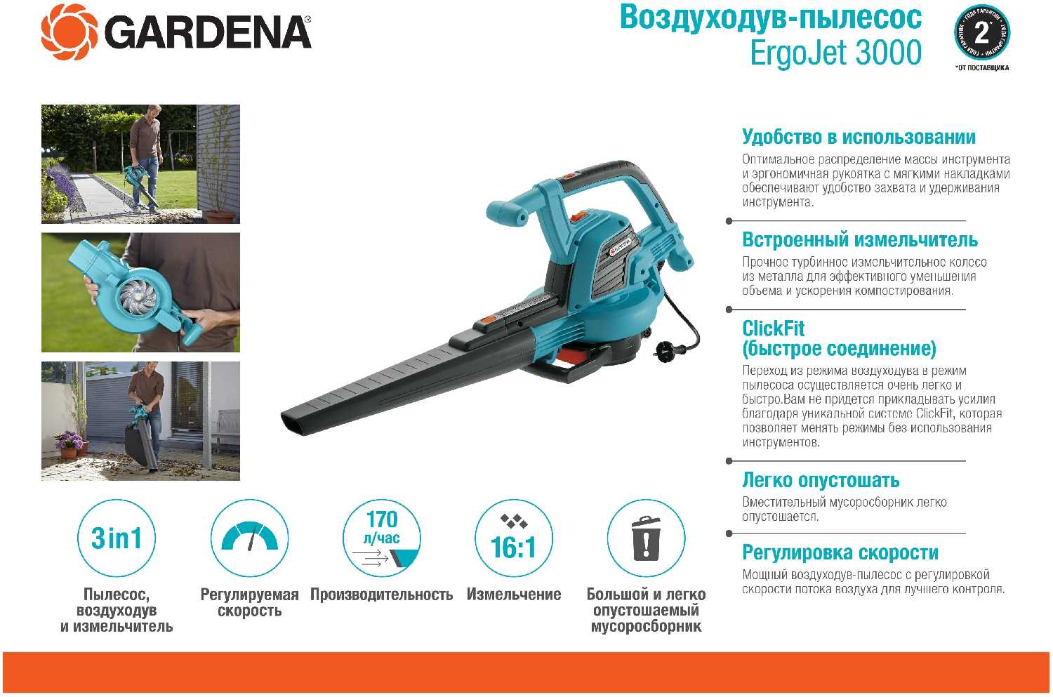 Отзывы о Электрическая воздуходувка GARDENA ErgoJet 3000