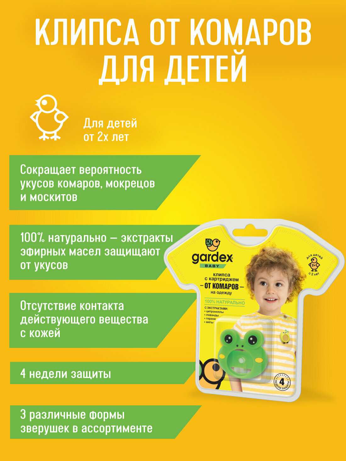 - + покупаем клипсу уже второй раз, ребенку нравится запах, и при ношении действительно не кусают комары . надёжно крепится на одежду, после ношения убираем в пакетик, чтобы подольше хватило работы таблетки вкладыша.