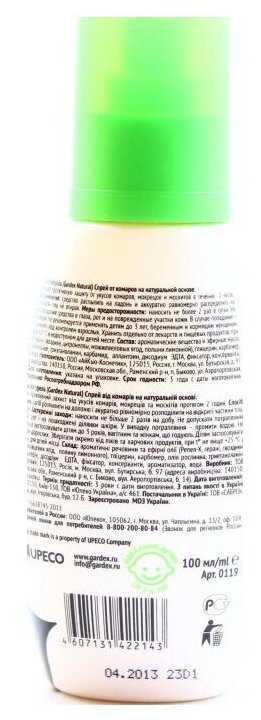 | Подробная комплектация : | Спрей от комаров Gardex Natural, 110 мл - 1 шт. |